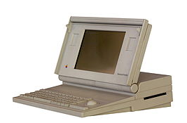 1989 Le Macintosh Portable fut la première tentative d'Apple pour faire un Macintosh plus facilement transportable. Il fut accueilli avec beaucoup d'enthousiasme par la critique, mais il s'en vendit peu durant les deux ans de sa commercialisation. La cause était certainement son prix trop élevé (6 500 $) pour une machine très peu évolutive et peu puissante par rapport aux Macintosh de bureau (Macintosh IIx, IIcx, IIci), prix qui était en partie dû à un écran LCD à matrice active, technologie très chère à l'époque. Pesant plus de 7 kg, le Macintosh Portable ne peut pas être vraiment considéré comme un ordinateur portable, mais plutôt comme un « transportable » (en comparaison le PowerBook 100, lancé deux ans plus tard, ne pesait que 2,3 kg). Sa batterie à acide lui assurait une longue autonomie de 10 heures. Le premier modèle ne possédant pas de Trackball, il fallait brancher une souris pour l'utiliser.